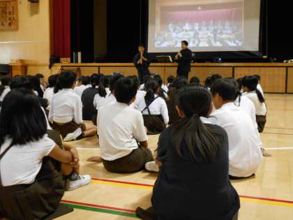 今年度は「文化芸術による子供の育成事業 巡回公演」におけるプログラム「邦楽器による伝説舞台 —羽衣—」を鑑賞します。