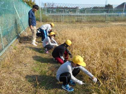 子どもたちは、はじめのうちは要領も解らずこわごわの様子でしたが、慣れてくると次々に稲を刈り取っていきました。約一時間で、たくさんの稲を刈り取ることができました。