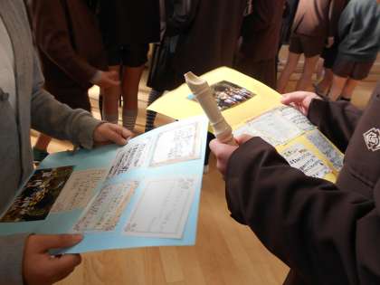 手作りのメッセージカードには、全校たてわり班遠足での思い出や、6年生一人ひとりにあてた寄せ書きが載っていて、渡す側ももらう側も懐かしそうに見入っていました。