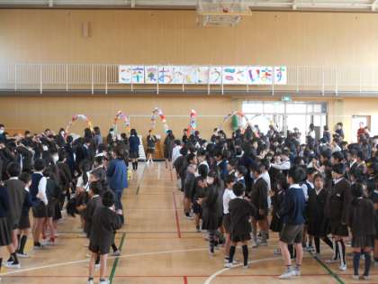 卒業を控えた6年生が在校生として、全校児童で一緒に行う縦割り班の集会活動は、これが最後の行事です。