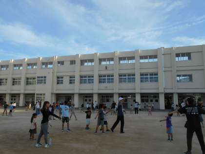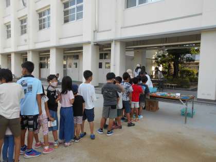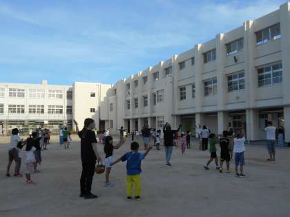 今日でPTA主催のラジオ体操は終わります。最終日の今日も、たくさんの児童・保護者・幼児等が参加していました。