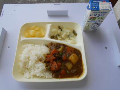 今日もカレーライスがおいしく食べやすかったです。ラッキーニンジン付きで、子どもたちにも好評でした。