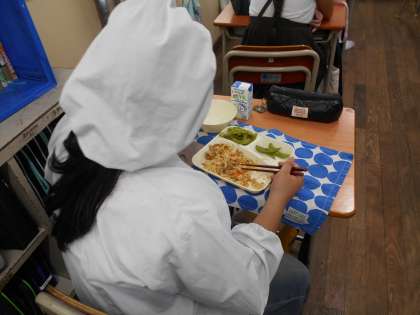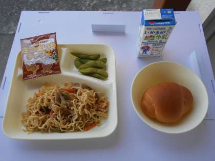 8月の給食は今日で終わりです。今日も焼きそばやえだまめなど夏らしく食べやすい献立でした。