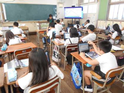 月の動き方について調べてまとめていました。学習者用端末も使って学習しました。