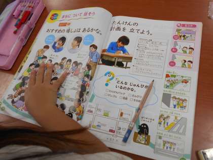 町たんけんの事前学習をしていました。みんなで計画を立てています。