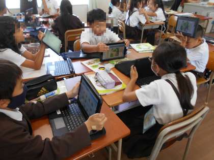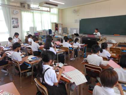 1組は、音楽でリコーダー演奏の練習をしていました。2組は、理科で、昆虫のすみかについて調べていました。