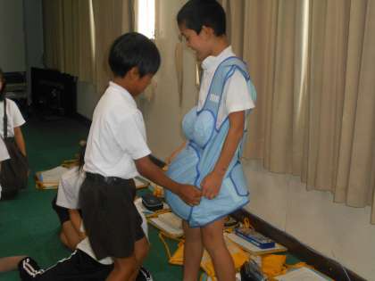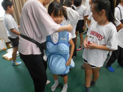 体験活動では、赤ちゃんの重さや妊婦のおなかの重さを感じることで、いのちの重さを感じてくれたことと思います。