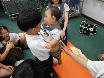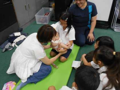 子どもたちが一番印象に残ったであろう、赤ちゃん先生とのふれあいの様子です。