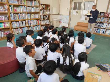 司書の先生に読み聞かせをしてもらいました。読んでもらった本のシリーズを借りた子もいました。気に入ったのかな?
