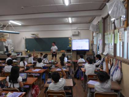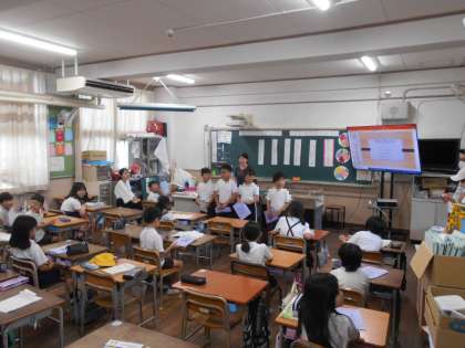国語科の詩の群読と、生活科「町たんけん」のインタビューの発表をしました。