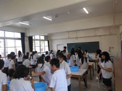 家庭科で洗濯実習をしました。手洗いと洗濯機の違いについて体験的に学びました。