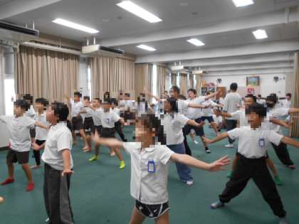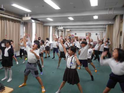 運動会ダンスの練習風景です。動画を見ながら復習中の様子です。声がものすごく大きく元気な5年生でした。