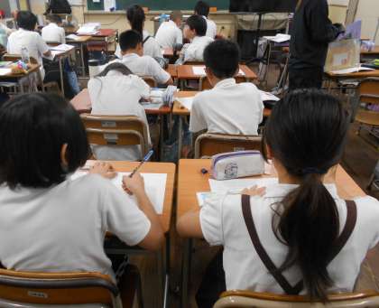 水産業についてのまとめの学習をしていました。先生が要点をプリントにまとめてくれていたので、穴埋めで解答していきました。