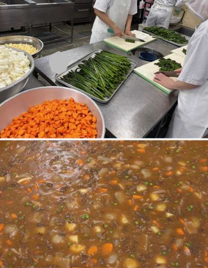 今日も給食調理員さんには、朝からたくさんの食材を切ってくださいました。