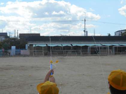 今日の授業は朝からみんなが楽しみにしていた「みずでっぽう」の実験でした。とじこめられた水を押したときの様子について、体験的に学習しました。