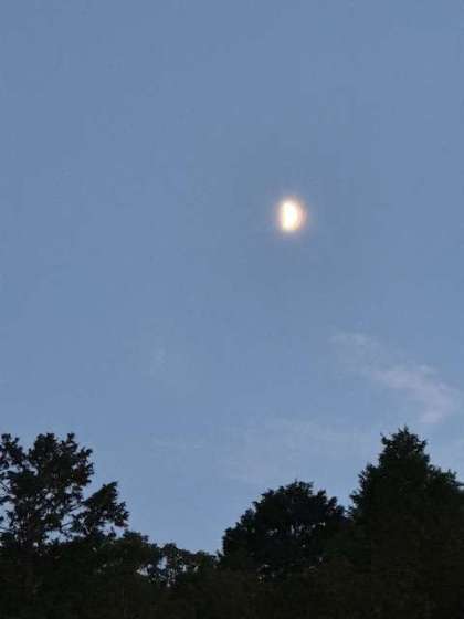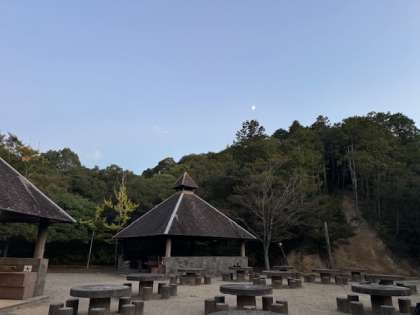 夕方になってとても涼しくなりました。空には綺麗な半月が昇っています。