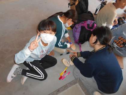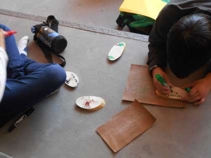 木材を磨いたら、絵付けをします。絵付けをし、金具やひもをつけたら完成です。