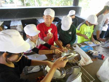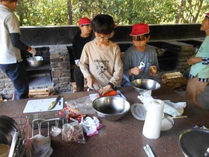 協力して食材を加工しています。おいしく仕上げたい気持ちとやりたい気持ちが高かったです。