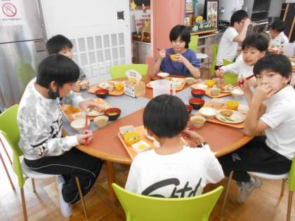 唐揚げにテンションが上がっていましたが、朝ごはんをしっかり食べたせいかあまり進んでいないようでした。