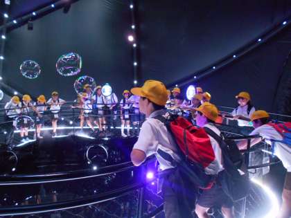 夢を込めたシャボン玉が浮かび上がる様子です。幻想的な世界ですね。