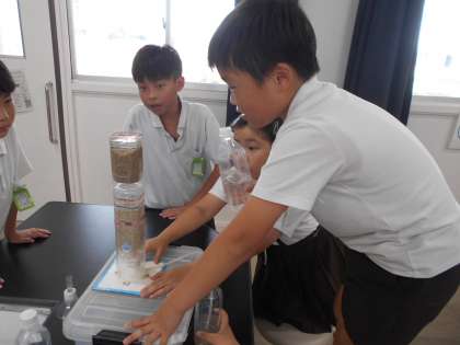 大阪市水道局の方にお越しいただき、出前授業「水道教室」が開催されました。4年生は理科の実験が大好きなので、とても楽しみにしていました。意欲的に楽しんで取り組んでいました。