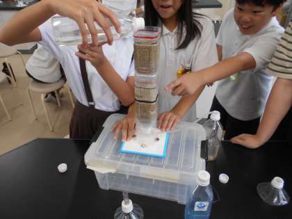 水がきれいになっていく様子が実験を通してわかりました。普段飲んでいる水道水も、このように処理して安全を確認して家庭などに送られているんですね!