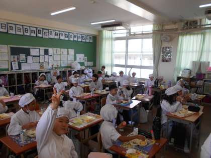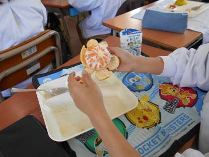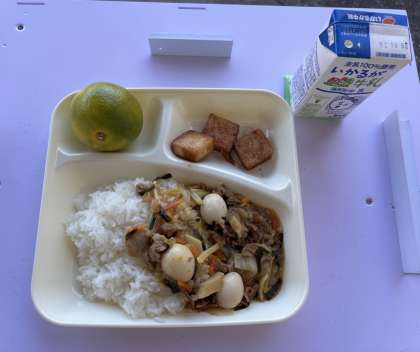 子どもたちはみかんと中華丼のうずら卵が出たことを喜んでいました。