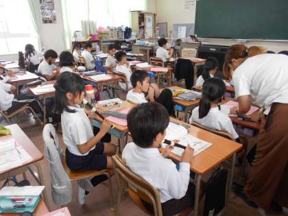 先週木曜日の音楽の学習の様子です。リコーダー奏「マジカルシラソ」の練習です。