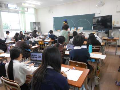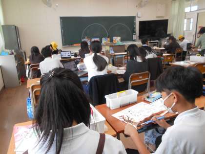 ハロウィンに関連した作品のようです。タブレットで調べながらプランを立てている児童もいました。