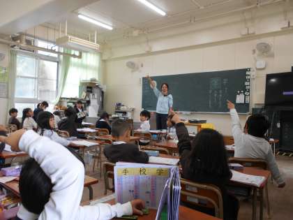 漢字の学習に取り組んでいました。先生と一緒にそら書きをしました。「学」という漢字を学習しました。