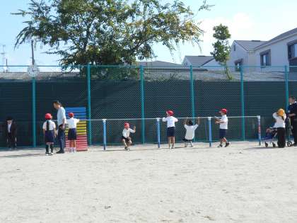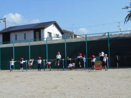 第2運動場で鉄棒の学習を行いました。頑張って練習していました。