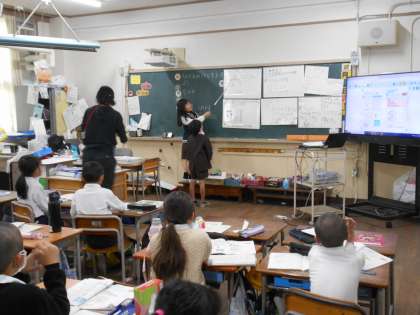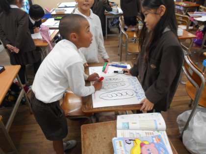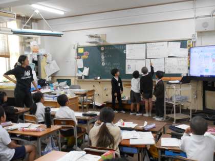 かけ算の学習をしました。5の段のかけ算の方法について考えていました。