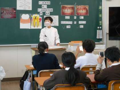 自分の歯も鏡で観察し、みがき残しを歯ブラシで磨く練習をしました。