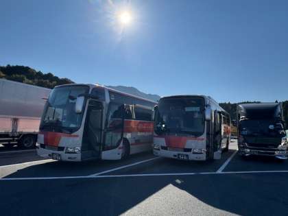 6年生のバスは現在伊賀SAに到着し、トイレ休憩を済ませたところです。まもなく再出発します。
