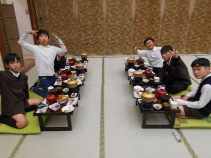 お刺身や蒸した肉や野菜、てこね寿司など盛りだくさんなメニューでした。たくさん活動したのでおかわりしている子もたくさんいました。
