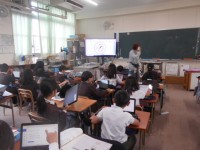 反比例の式の表し方について学習しました。xとyの表からもとになるデータ(きまった数)を見つけ、その関係性から式を考えました。