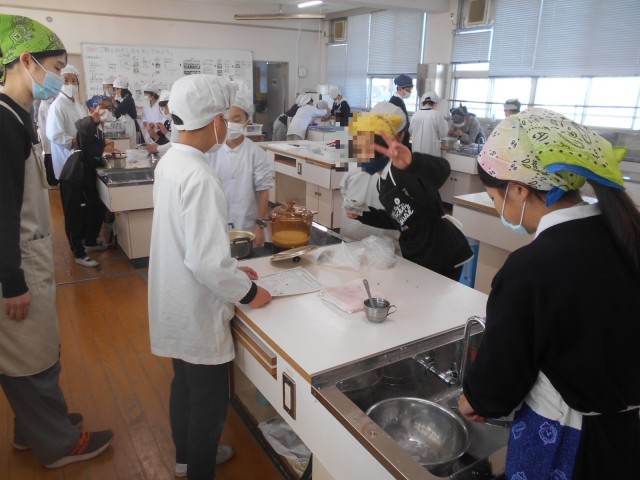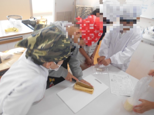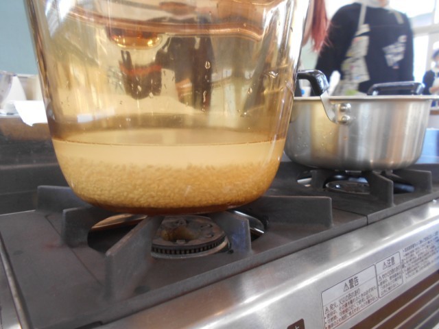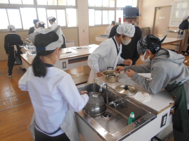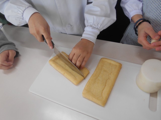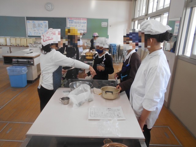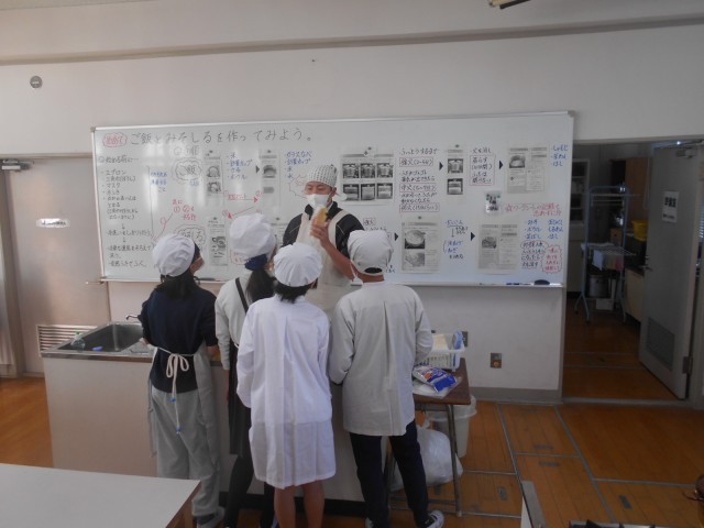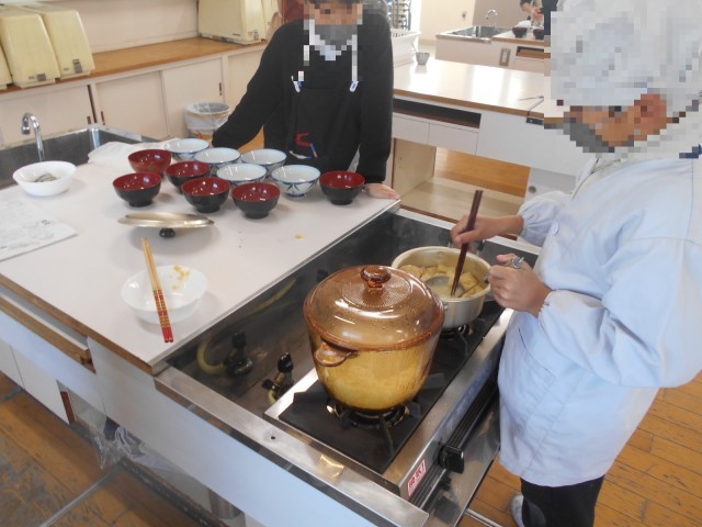 今日は5年2組が調理実習をしました。ごはんとみそ汁の調理です。煮干しを丁寧に処理し、おいしいみそ汁のだしを作っていました。具を切るときは、猫の手を意識している子が多かったです。ごはんの水の量も、観察したりプリントに書き込んだりしていました。