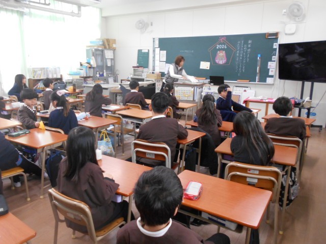 今日から3学期が始まりました。冬休みの課題などを出したり、思い出を話したりしながら1時間目を過ごしていました。