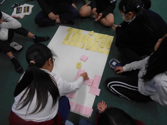 平野区キャラバンメイト連絡会の方々にお越しいただき、「高齢者理解学習」を行いました。平野区キャラバンメイト連絡会は、「地域包括支援センター」や「社会福祉協議会」などが連携し構成された組織で、認知症に対する正しい理解を深めてもらおうと瓜破地区の各小学校で出前授業をしていただいてます。4年生は今回、本校で初めてこの学習に取り組みましたが、わかりやすく教えていただき、高齢者を大切にしようという意識も高まったようです。