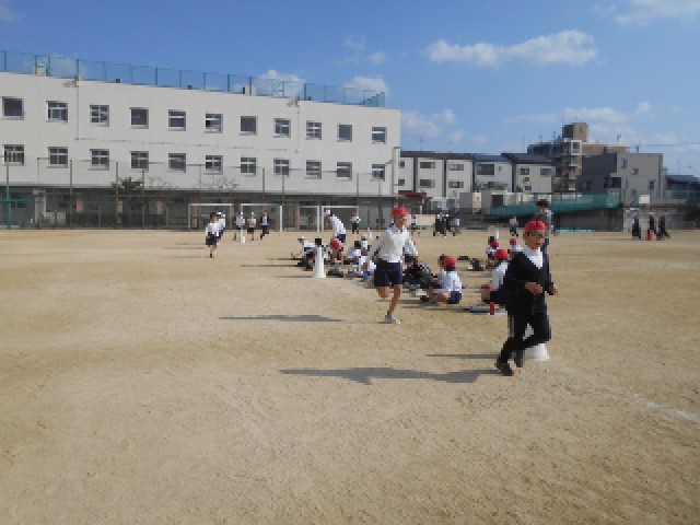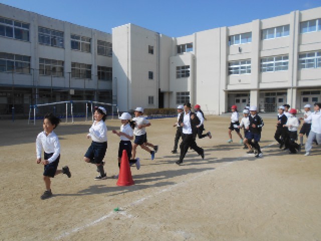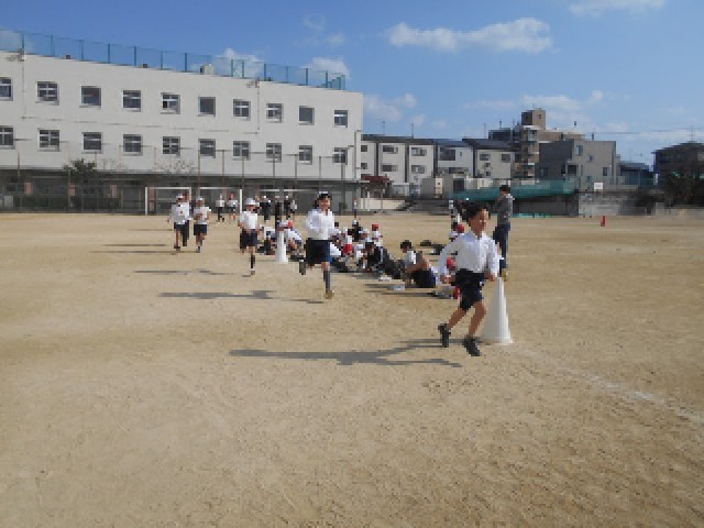 5時間目、少し気温もちょうどよい時間帯に5年生の体育では持久走を行っていました。5分間でどれぐらいの距離を走れるか測っていました。結構速く走る子もいれば、途中で力尽きる子もいました。