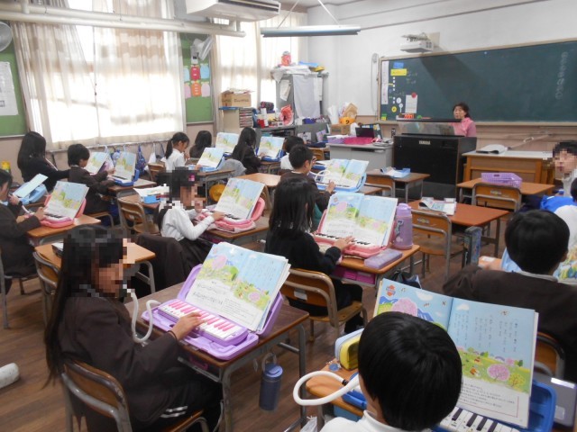 1組はドリルのやり直しなど、2組は鍵盤ハーモニカ「はるがきた」の練習でした。