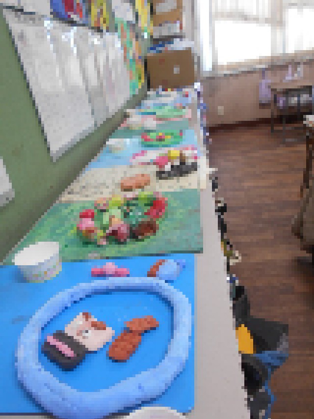 各教室に、図画工作科のかわいらしい作品(製作中)も思わず見入ってしまいました。学習参観が楽しみですね!