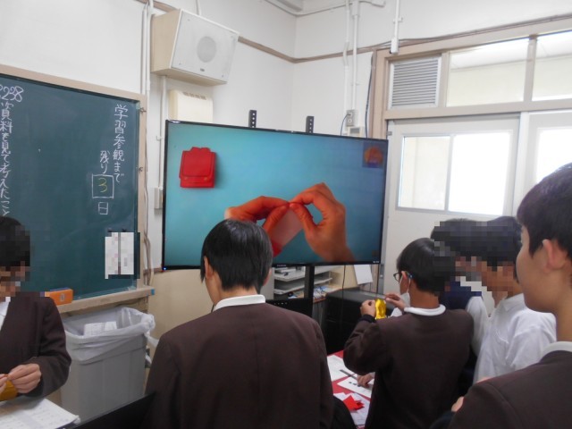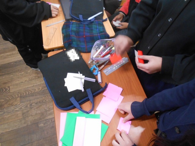 外国語活動の余った時間に、折り紙で制作をしていました。何を作っているのかな?