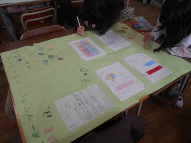 総合的な学習の時間に、国語科で取り組んだアンケートの集計結果をまとめる学習に取り組んでいました。