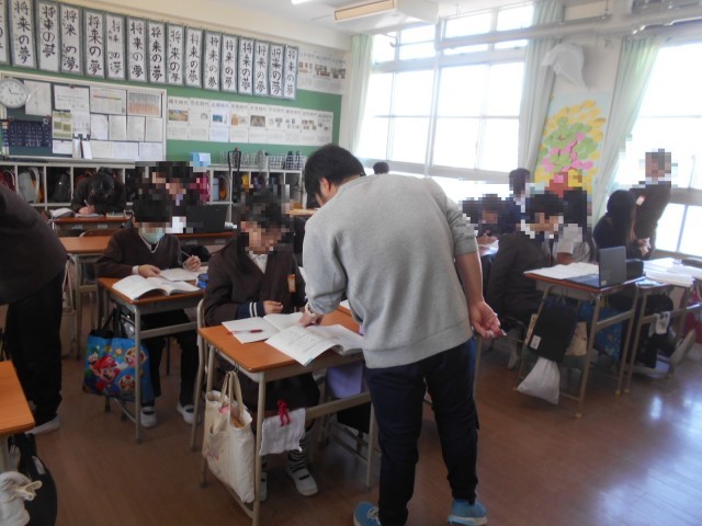 教科書の最後の方にある「まとめ」に取り組んでいます。記憶をたどりながら、思い出して学習していました。写真を撮りに行ったのに「先生、教えて!」と声を掛けられ、「これはね、・・・」とお手伝い。がんばって取り組んでいます!!