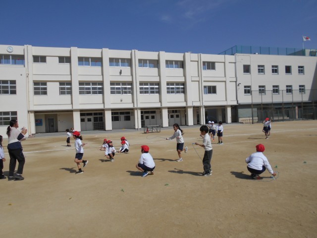 3時間目は体育科でした。ランニングの後、縄跳びをしました。後ろ跳びや片足飛びなど、難しい跳び方にもチャレンジしていました。