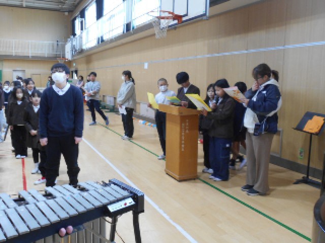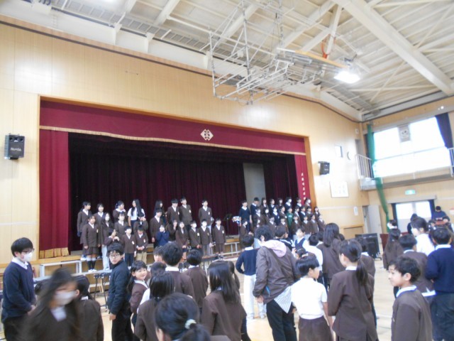 6年生にとって、卒業まで今日をふくめ学校に来る日が14日になりました。今日は、卒業を祝う会がありました。お世話になったお兄さん、お姉さんに感謝の気持ちを伝える日。始まりはみんなドキドキしていました。