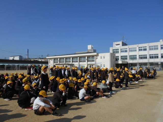 今日は、久しぶりに運動場で全校朝会を行いました。今日は平野区役所から副区長さんにお越しいただき、表彰をしていただきました。