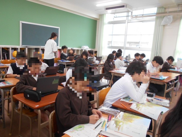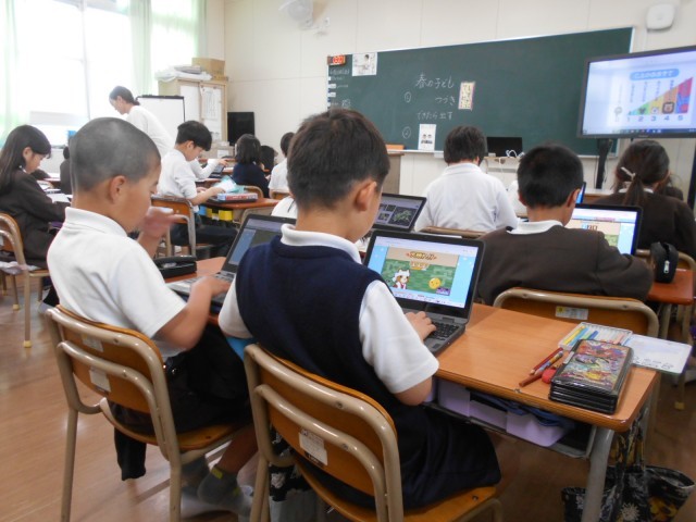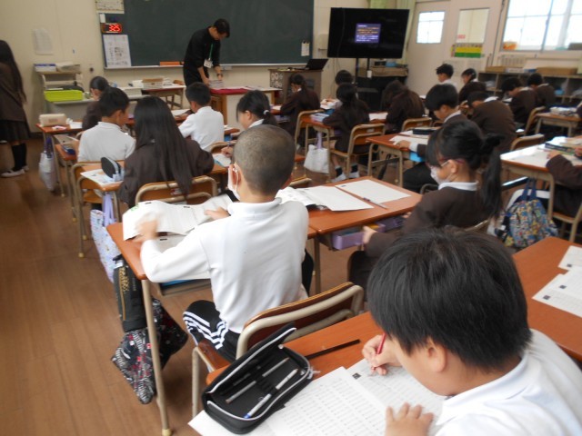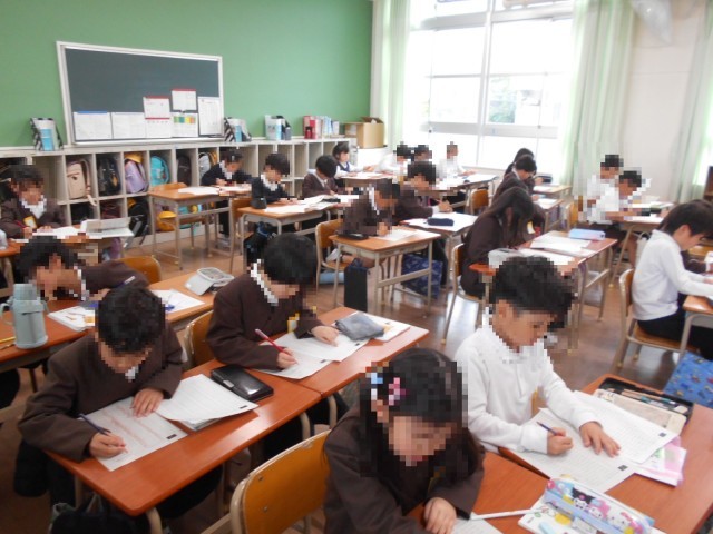 1組は国語科の視写学習や端末を使ったタイピング練習などに取り組んでいました。2組では、かけ算の100問のプリントに取り組んでいました。どちらの学級も、静かに頑張っていましたよ!
