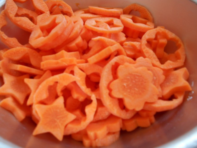 今日は入学お祝い献立でした。みんなの大好きなカレーライスが登場し、子どもたちも大喜びです。なんと、星形や桜型に切り抜かれたニンジン、名づけて「ラッキーニンジン」も、一部入っていたようです。